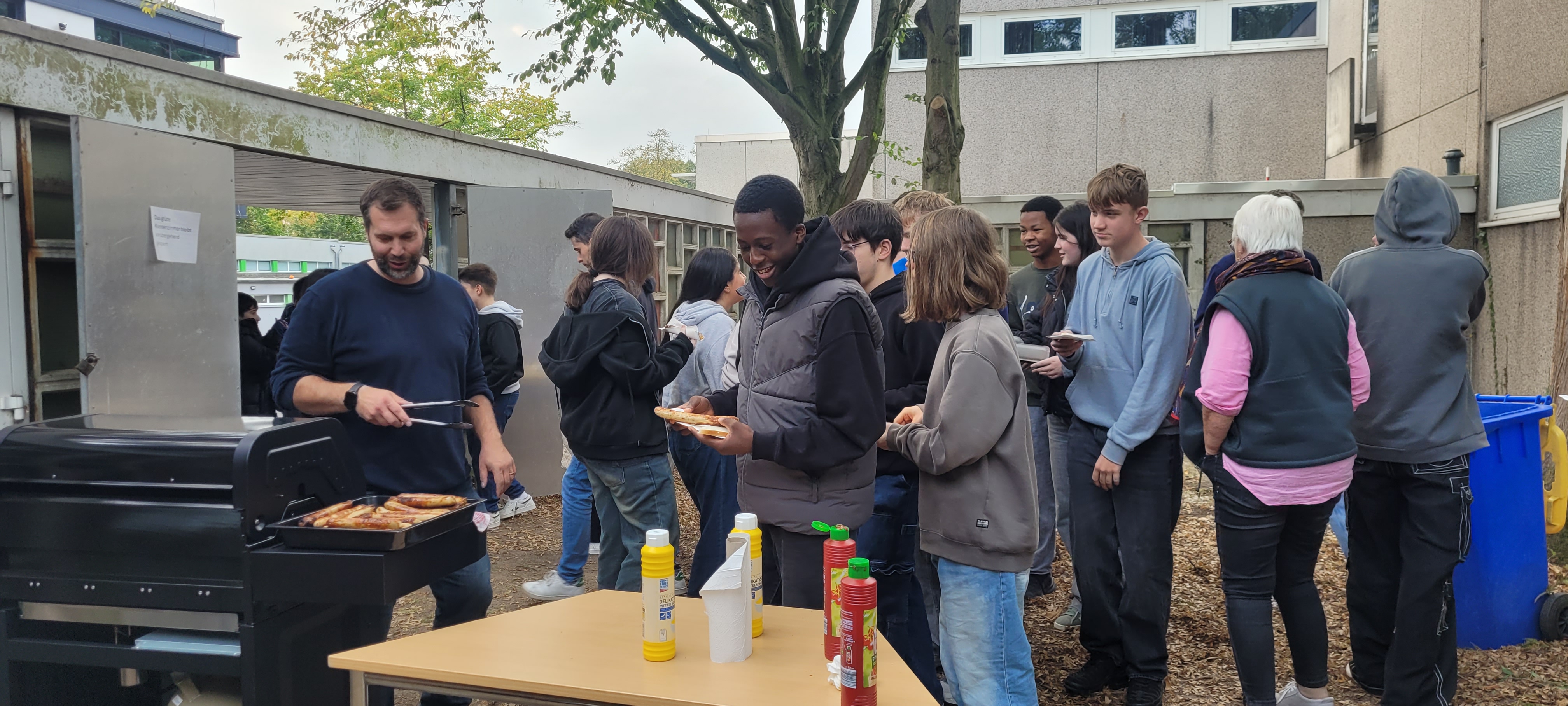 Mit Beginn dieser Woche durfte unsere Schulgemeinschaft sich über ein besonderes Ereignis freuen: die feierliche Einweihung unseres zweiten Grünen Klassenzimmers. Bei trockenem Spätsommerwetter versammelten sich Schülerinnen und Schüler sowie Lehrkräfte zum gemeinsamen Grillen, für welches sich als engagierter Grillmeister Herr Fröbel mit viel Humor und Geschick an den Rost stellte. Der Duft von Würstchen zog durch das Schulgelände und sorgte für gute Laune und ein fröhliches Miteinander. Es wurde viel gelacht, gequatscht und gemeinsam gegessen, wobei die neuen Bänke als zusätzliche Sitzgelegenheiten auf unserem Schulhof gerne ausprobiert wurden. Wir freuen uns auf viele weitere schöne Momente im neuen grünen Klassenzimmer!